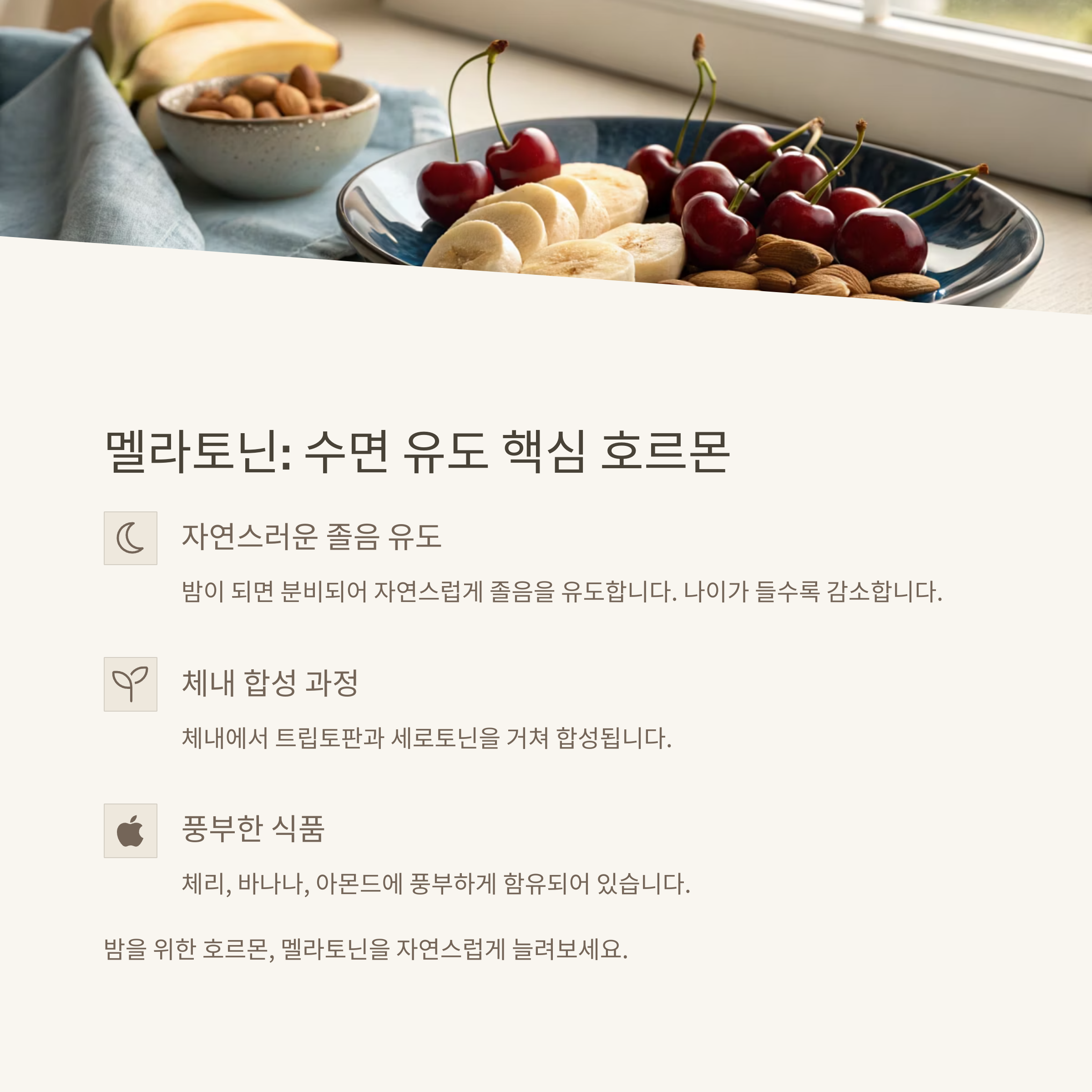 1. 멜라토닌: 수면 유도 핵심 호르몬