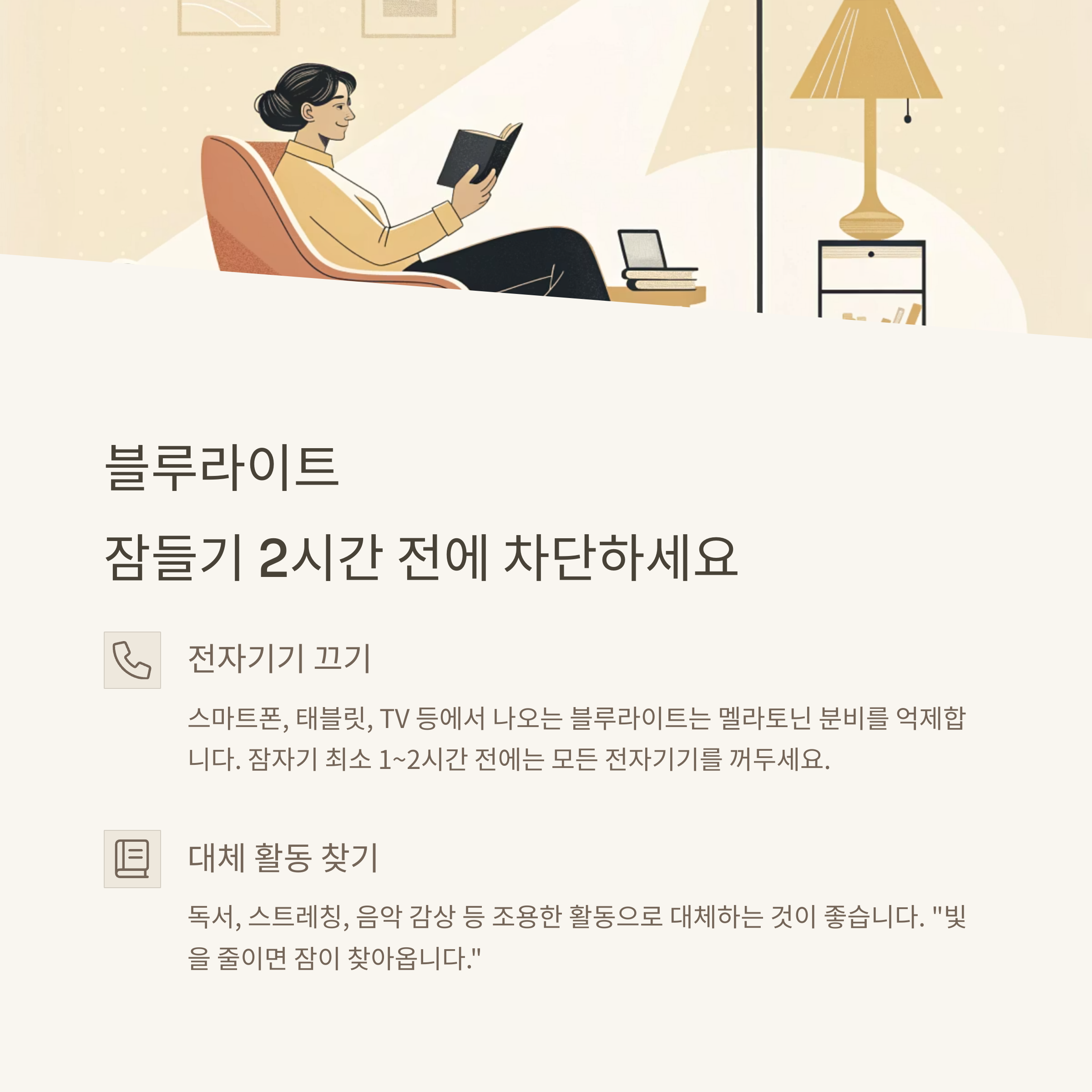 2. 잠자기 2시간 전부터 전자기기 멀리하기